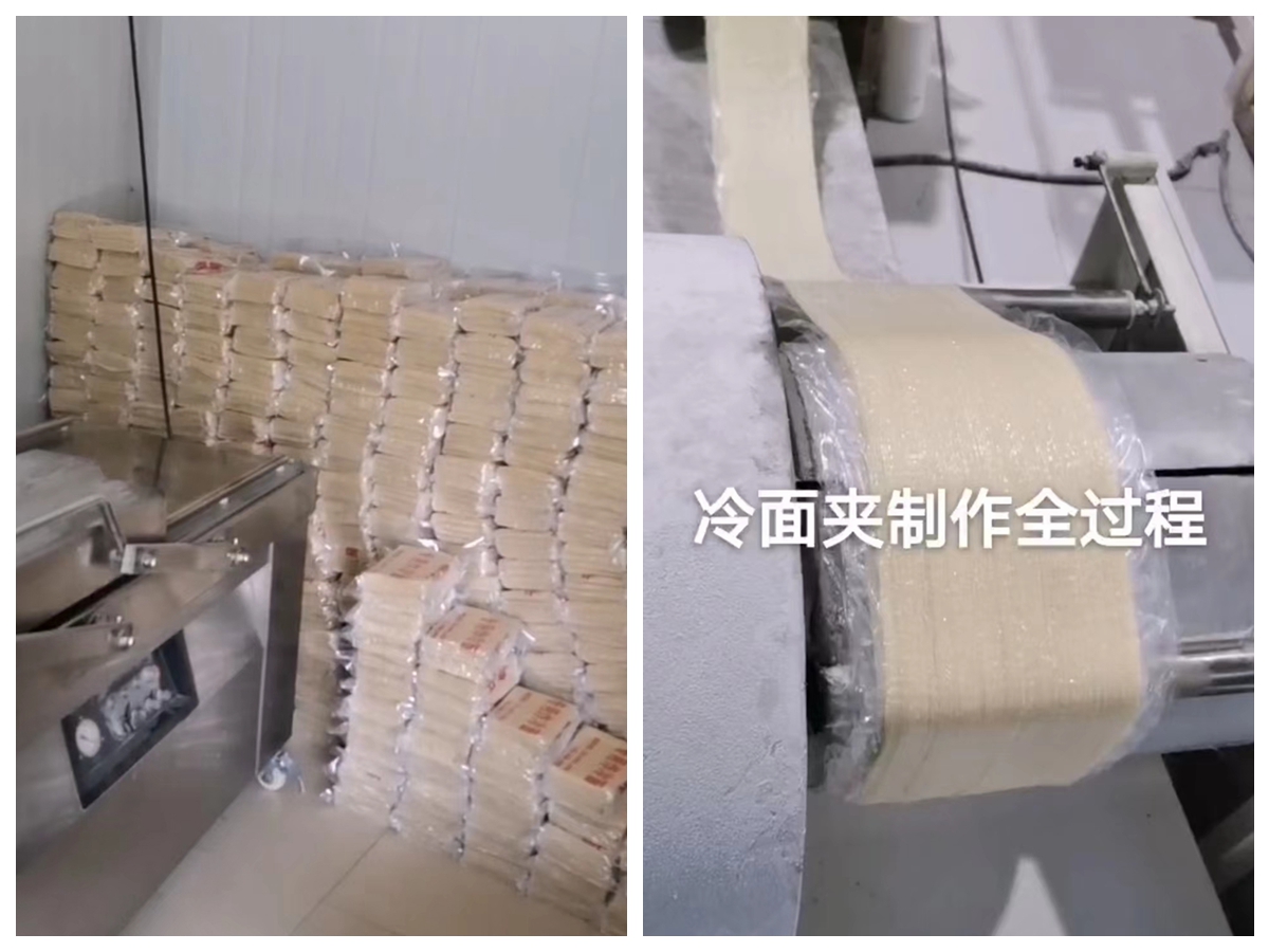 立中油炸烤冷面機器流水線設(shè)備---冷面夾生產(chǎn)制作